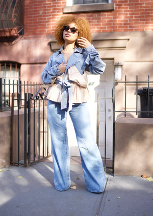 Crafted with refined sensibility, this two-tone denim trench jacket embodies metropolitan elegance and timeless style. The dual-tone design offers sophisticated versatility, pairing seamlessly with your existing wardrobe for an effortlessly polished look. Whether styled with sleek sneakers for understated chic or pointed heels for commanding allure, this piece delivers the understated luxury of high-fashion dressing. An investment piece that transcends seasons and occasions with grace.