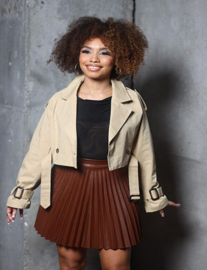 Crop top jacket with buckle on the bottom part offering an edgy style to any outfit. Stylish cute buttons to define the chic and classic look. Can be matched with our Khaki button skirt as well.