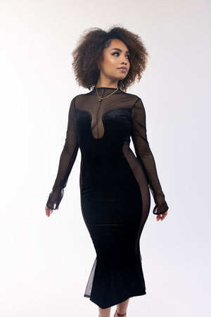Introducing the Lilly Velvet Sexy Dress. Made with luxurious velvet and sheer material, this dress will elevate your evening outings. The mermaid shape hugs and enhances your curves, providing a sexy and confident look for any occasion. Experience the sensuality and sophistication of this must-have dress.