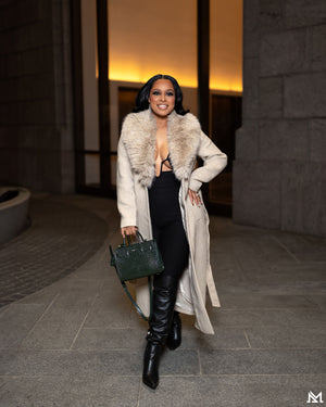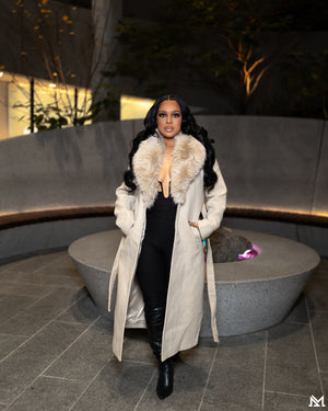 Elevate your look and take on any event or outing with this daring long rend coat. The removable faux fur collars add an extra touch of luxury while the belt accentuates your curves. Be bold and demand attention with this excellent choice!