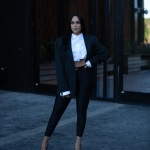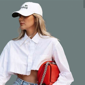 Tap into your fall trends with this cropped dress up shirt and wide wrist style. With a pocket on one side and its fresh cut strings hanging, you can wear this to a day event or combine with street wear.