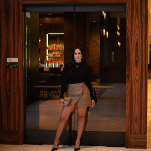 Discover different ways to enhance your sleek showing off your legs. Pairing this with heels and any outwear will have you stand out of the crowed. This skirt is creatively detailed with black buttons that will help complete your look.