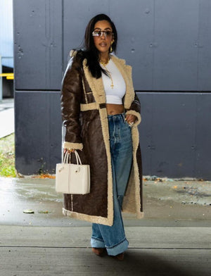 Mocha Fur Lined Leather Jacket
