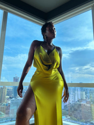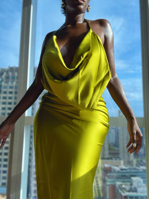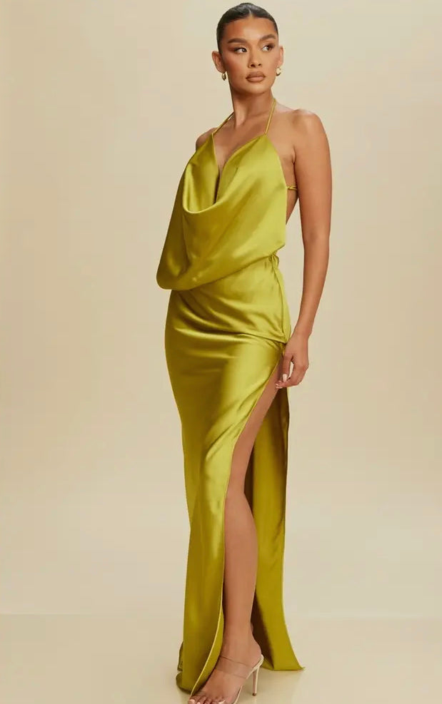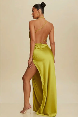 Step out in sophistication with our Olive Green Silk Open Back Dress. Made with luxurious silk, this dress will not only enhance your skin's hydration, but also sits beautifully on all body types. Pair it with discreet shape-wear for added curves, and feel fresh and confident wherever you go.