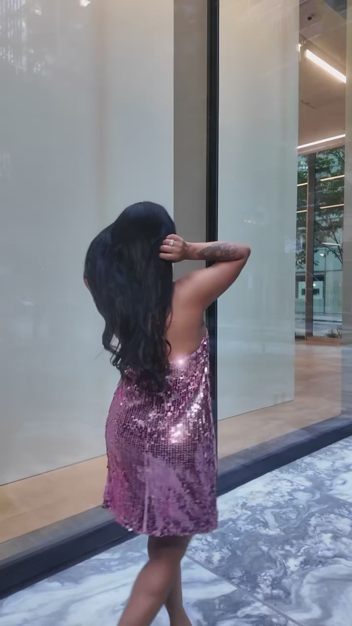 This premium pink sequin dress is perfect for adding a touch of glamour to your next night out or special occasion.Featuring a flattering halter neckline and a sleek, figure-hugging fit, it captures the light beautifully with its sparkling sequins.Complete the look with your favorite heels, and you're ready to shine in true premium fashion.