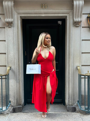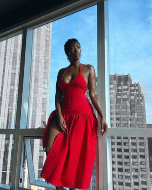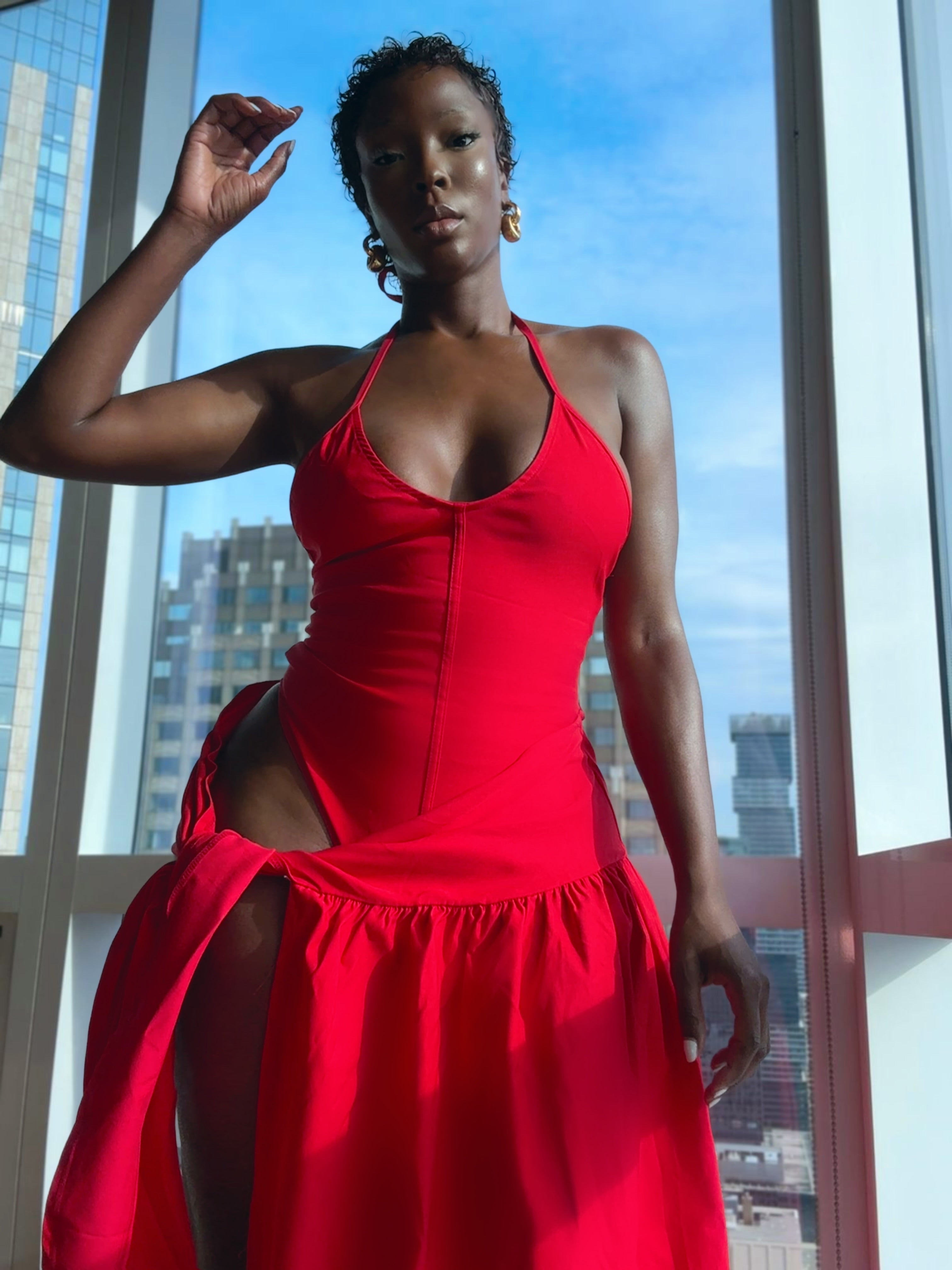Red Halter Open Cut Dress