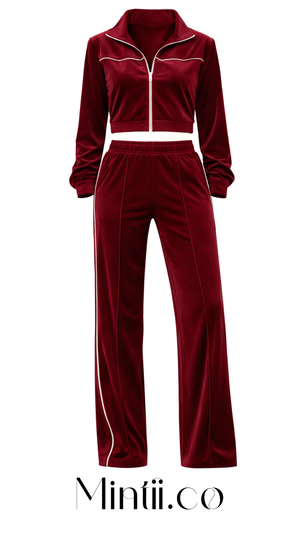 A highly-rated velour two-piece set from our NewCollection is designed for effortless everyday style. Crafted from soft velour, it offers a plush feel with a modern, polished silhouette. The cropped jacket and relaxed pants make this matching set ideal for lounging, travel days, casual outings, or elevated off-duty looks. Comfortable yet refined, it’s easy to dress up or down for any season. A must-have for fashion-forward wardrobes seeking comfort, confidence, and timeless versatility in one coordinated outfit.