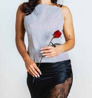 White & Black Back Tie Top