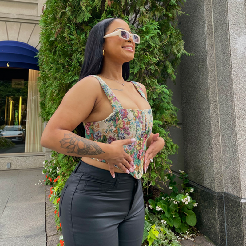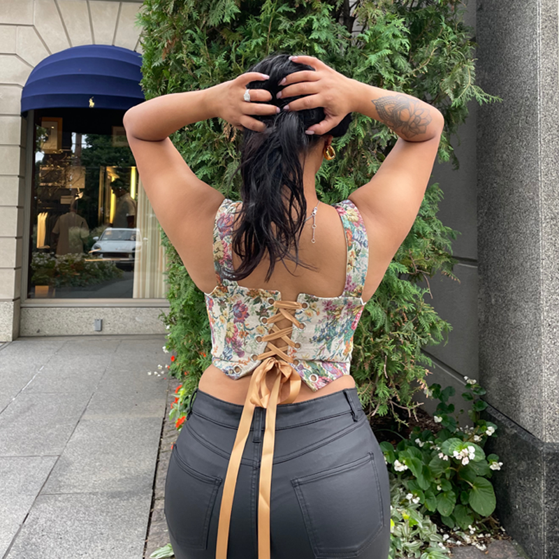 Fashioned with a flirtatious allure, our Gardenia floral tapestry corset flaunts a front closure and tie-back for a genuine corset effect. It boasts a square neckline and wider straps for reliable reinforcement. This corset can be combined with trousers or a skirt for a delicate touch.